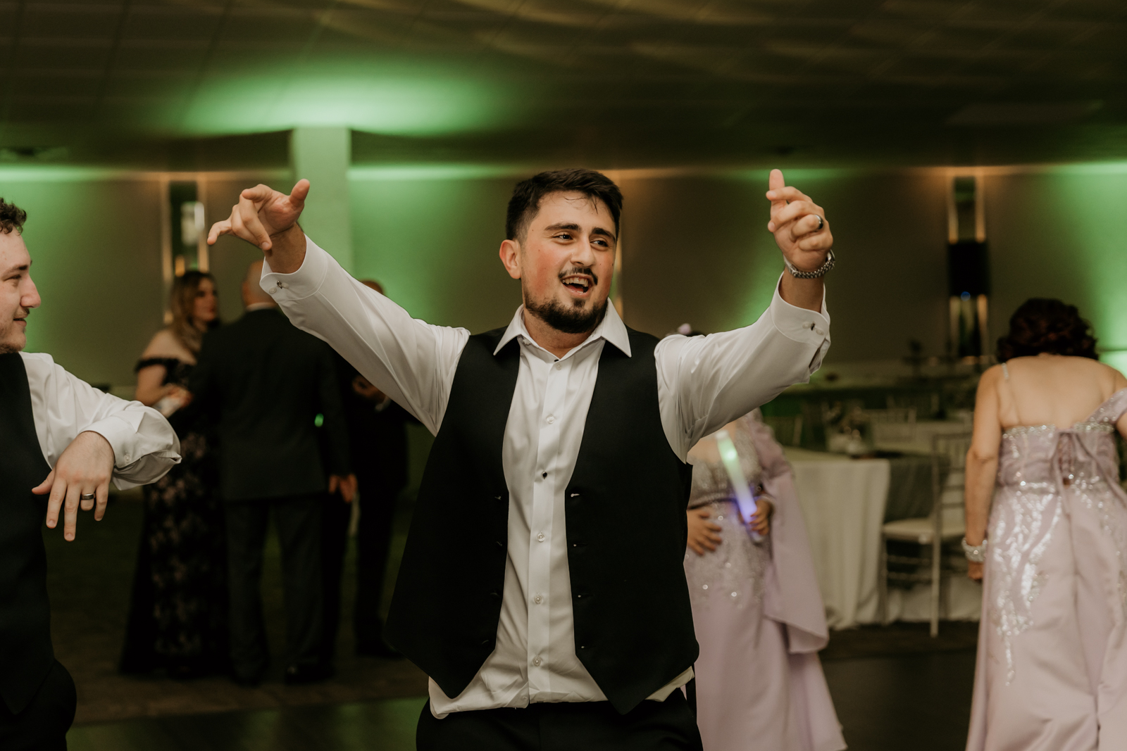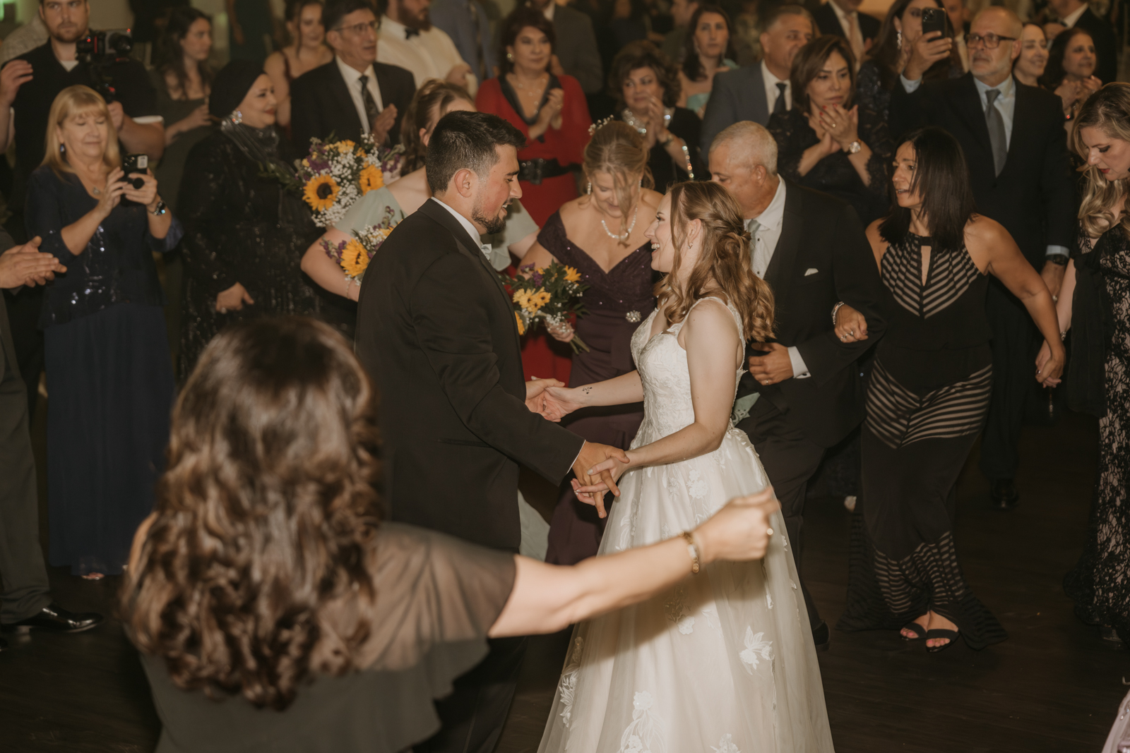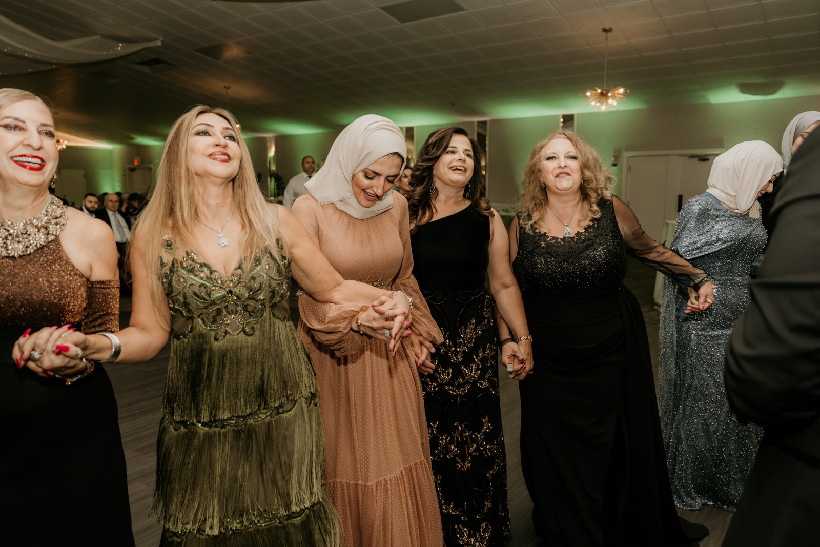 The celebration continued into the grand ballroom, where Dana and Mo were introduced as newlyweds to cheers and excitement. The evening flowed beautifully with a Zafee, cake cutting, heartfelt speeches, and formal dances that brought everyone to tears and laughter.