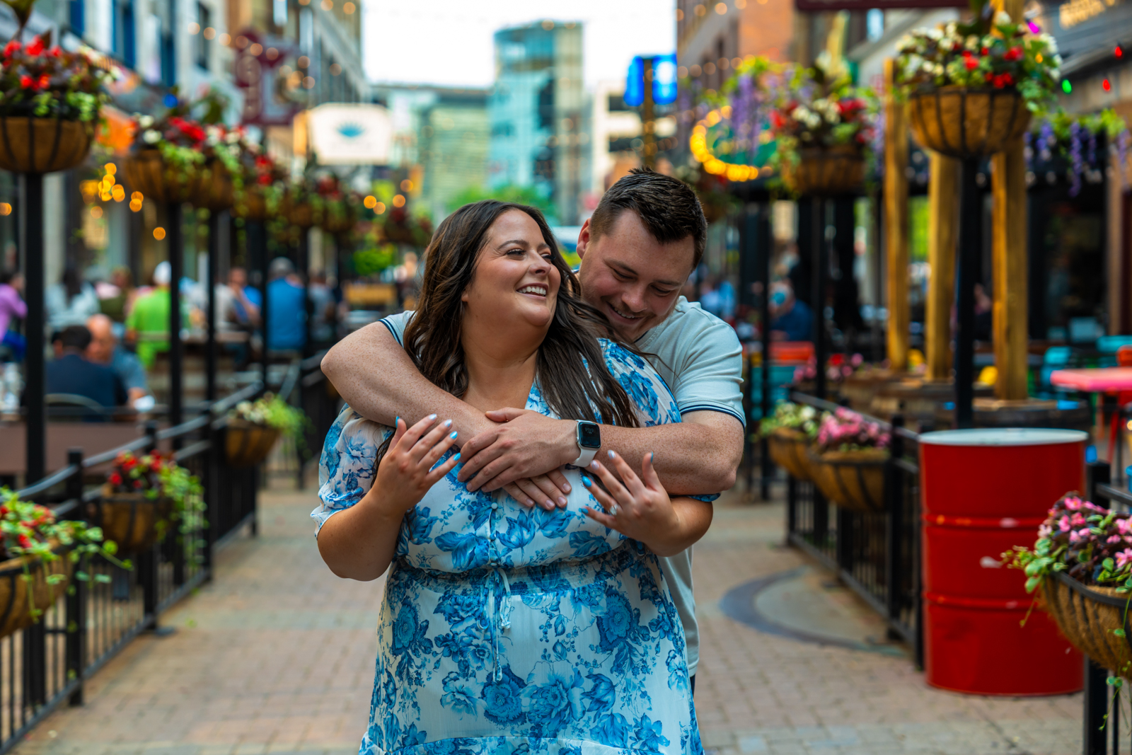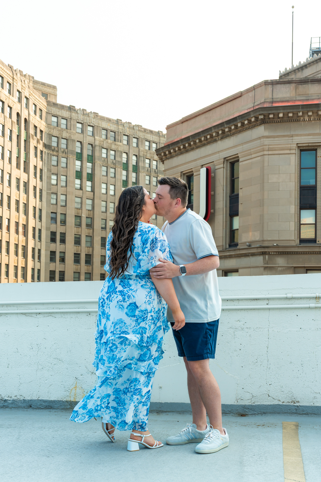 As the golden hour sunlight bathed the city in its warm, magical glow, Mathew & Taylor’s love truly shined. The stunning urban backdrop gave the photos a cool and modern edge, while the soft natural light added a romantic touch. From the rooftop views overlooking the city skyline to iconic landmarks like the Guardians and Cavaliers stadiums, every frame tells a story of connection, joy, and excitement for their future together.