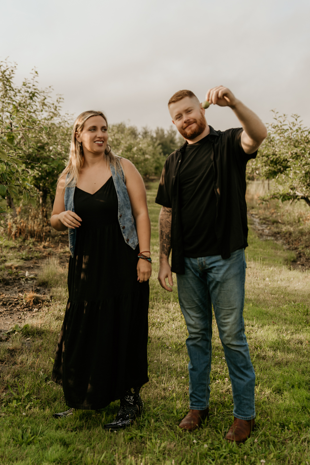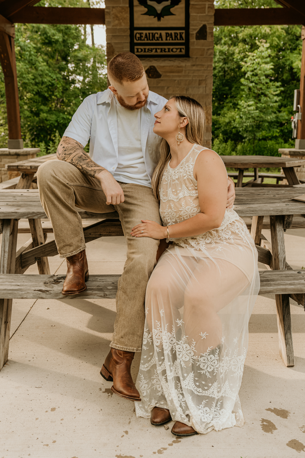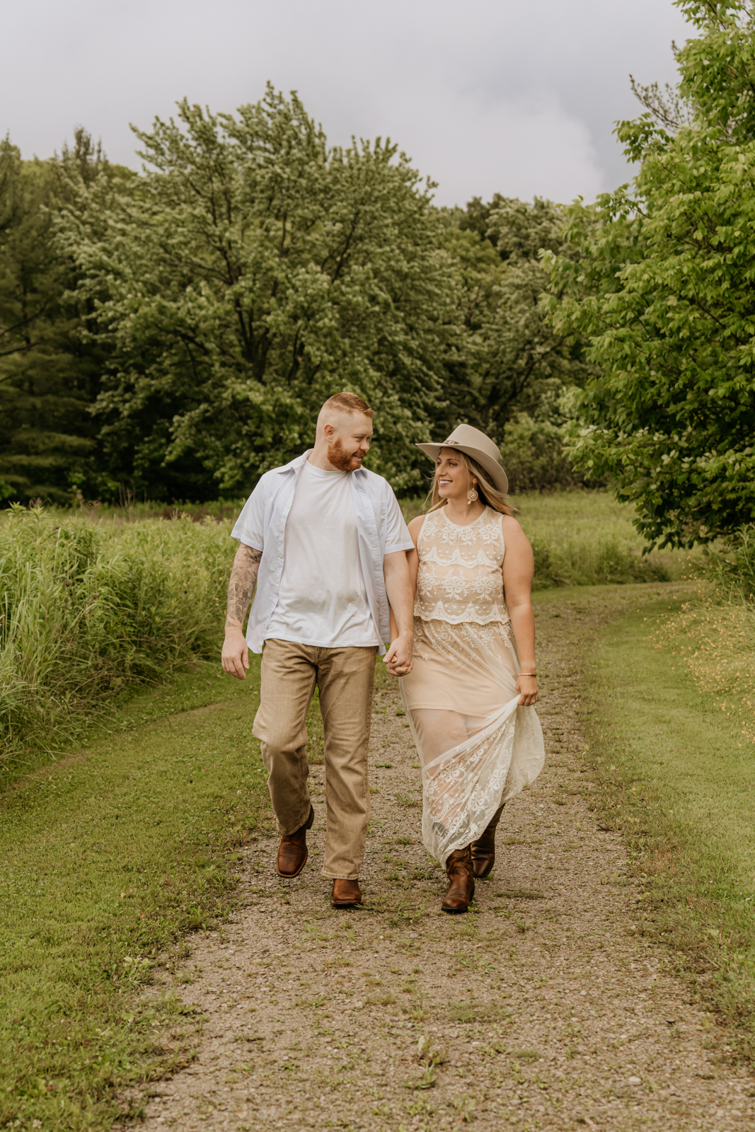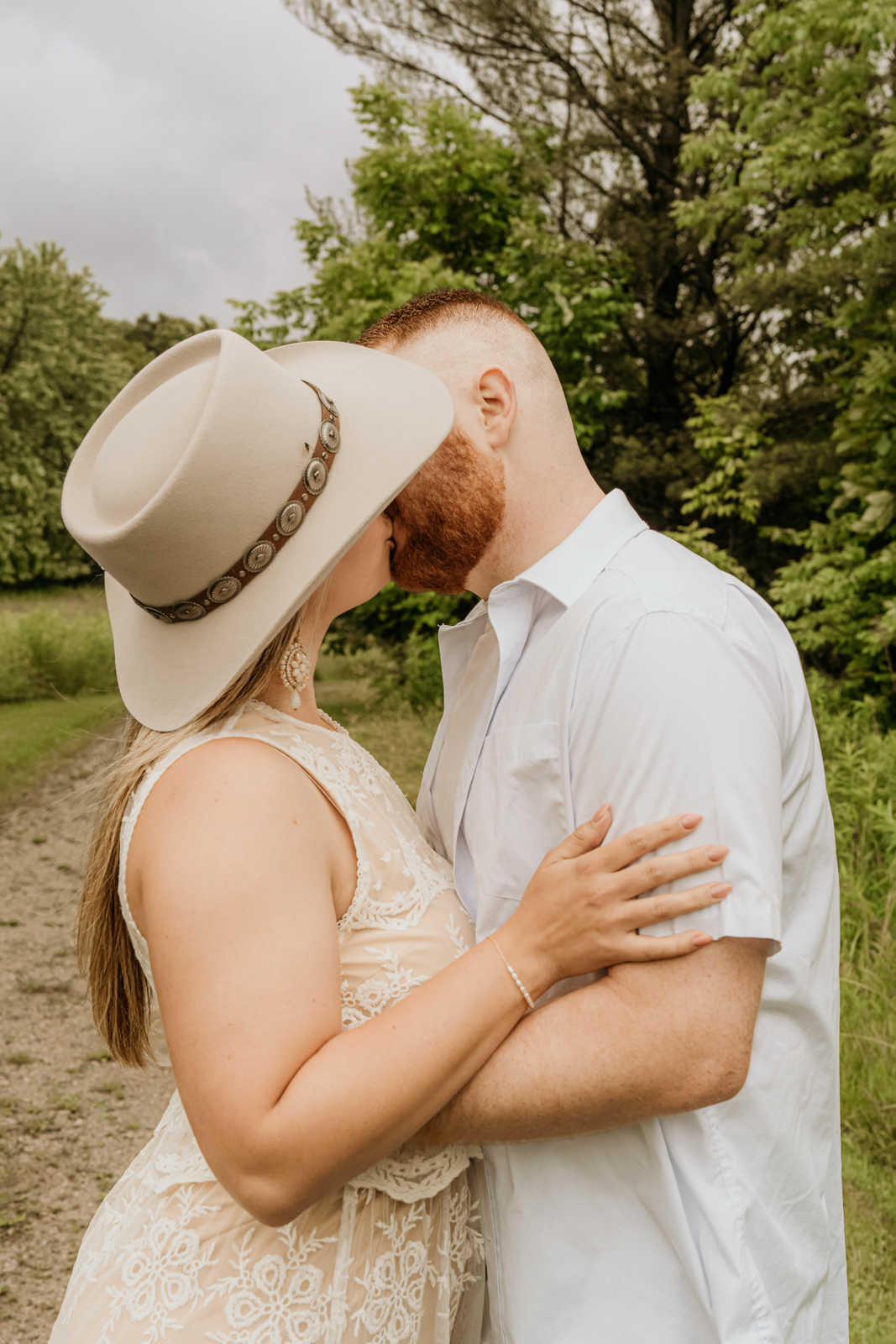 This session was extra special with a fun western twist! Racheal & Tom embraced a charming western style, complete with casual, rustic vibes that perfectly matched the setting. They even hopped inside their truck for some cozy and candid shots, adding a unique and personal touch to their photos. These moments captured their playful, down-to-earth personalities and the strong connection they share.